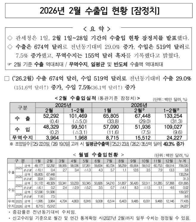 2026년 2월 수출입 현황