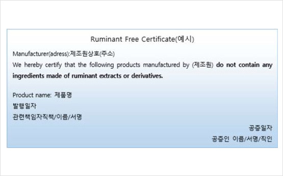 BSE비가공증명서 (Ruminant Free Certificate)